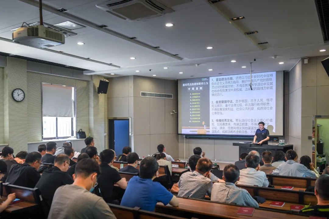 为深入学习贯彻习近平新时代中国特色社会主义思想主题教育和习近平总书记关于教育的重要论述精神,进一步加强学院师德师风建设,2023年6月21日,网络赌博游戏 在中大院求是堂召开师德学习教育大会。学院党政班子成员、党委委员在内的全体教职工参加会议,大会由党委书记冷嘉伟主持。
