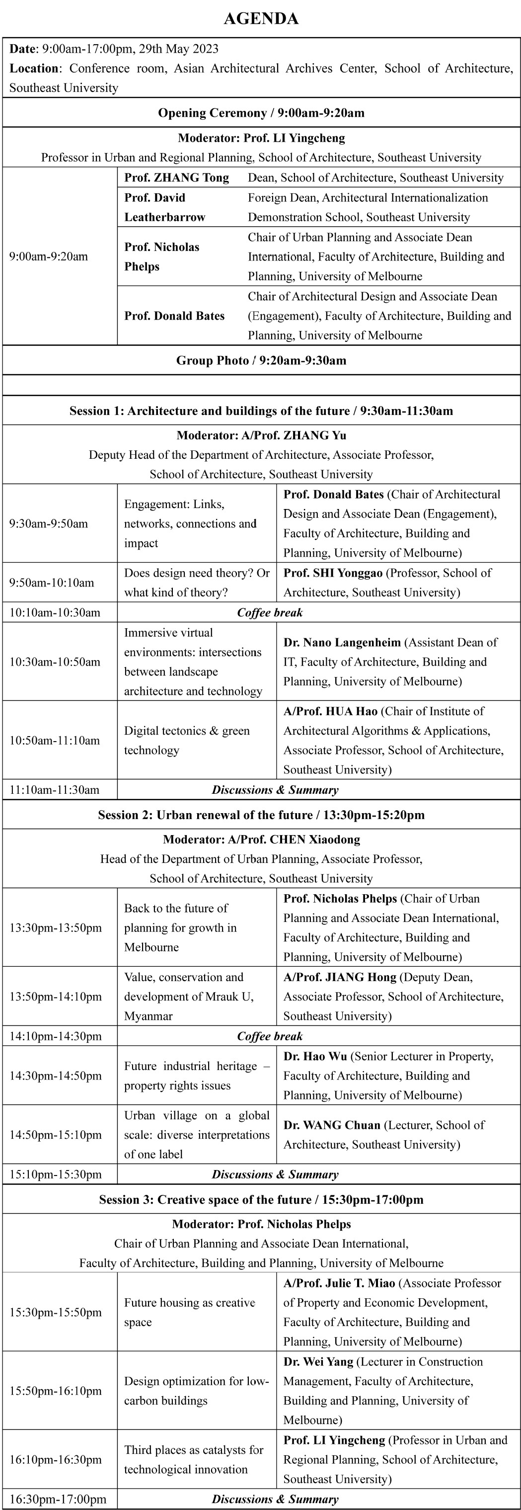 This workshop, themed Built Environment Futures, is jointly organized by the School of Architecture at Southeast University and the Faculty of Architecture, Building and Planning at the University of Melbourne. Experts from the two schools are invited to conduct discussions on this theme. The purpose of this workshop is to discuss the multiple forms and coping strategies of the future built environment under the background of urban sustainable development in different dimensions such as architecture, community and city and from the perspectives of economy, technology and environment. This workshop is also intended to further strengthen the academic exchanges and cooperation between the School of Architecture at Southeast University and the Faculty of Architecture, Building and Planning at the University of Melbourne.